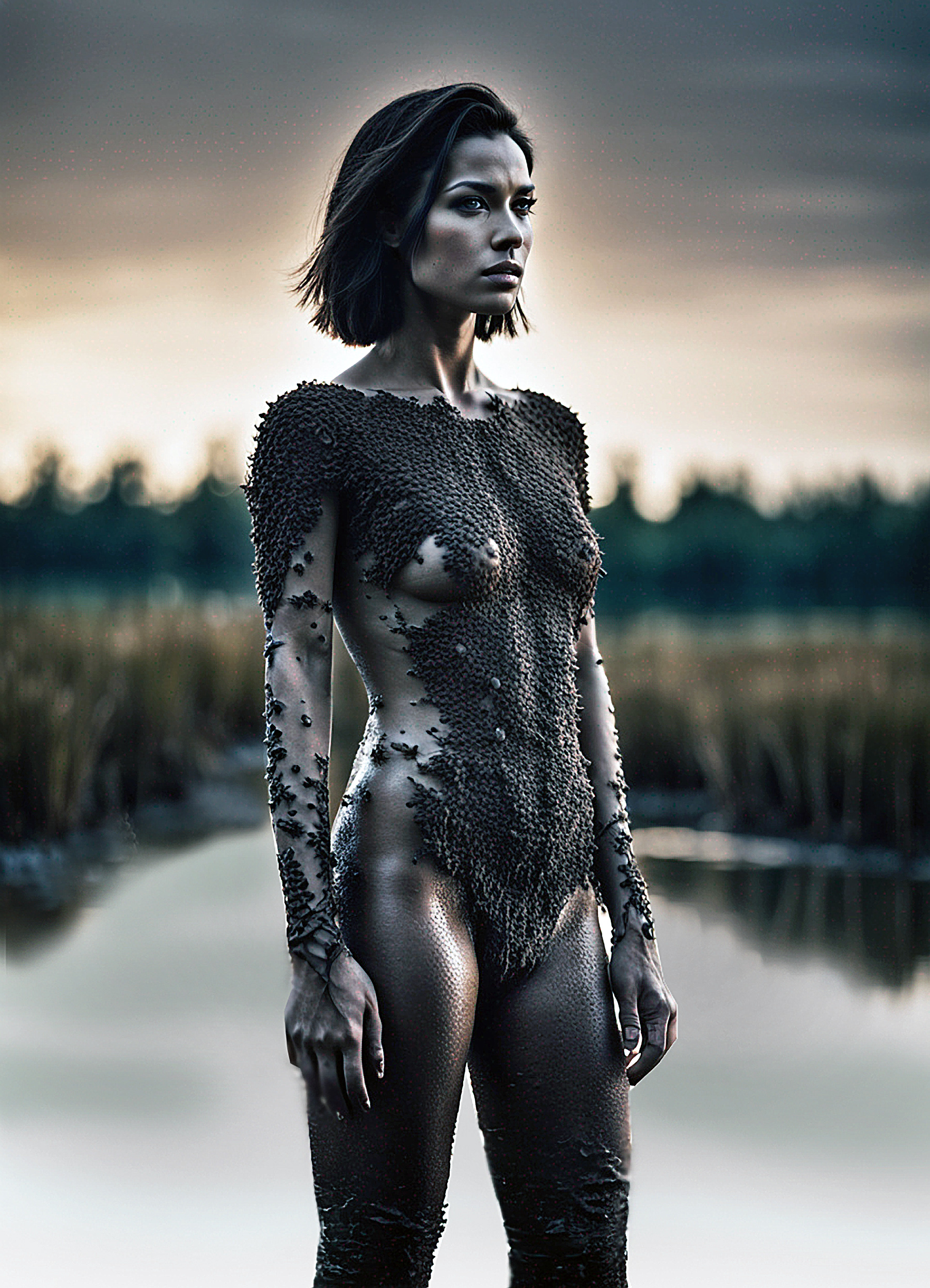 The thing with the tentacle was here in the darkness and close to her. Of course, it was making its way back to the water, she realised. Oh, don’t go back yet, please, her mind begged. Find me, come into me again. She put her arm forward to drag herself fully into the shadows where her father would never see her. As she did, she touched it. The tentacle was just in front of her. Her touch made it stop moving. She became excited and pulled herself up to where it’s thick limb lay motionless in the mud and ran her fingers caringly over it. The suckers were large and had their own motion, she could feel them with her finger tips, pulsing as they opened and closed. The tentacle responded to her gentle touching and in the faint light she saw its oily glistening surface as it slithered towards her and over her naked body. She liked it against her. She hadn’t felt it this way before. On the two occasions it had been with her, she had only had it sliding through her hands as it penetrated her vagina. This was different. She rolled over onto her back so she could feel it slide between her breasts towards her crotch. Feeling it’s strong, cold, form slithering over her skin, and its weight on top of her, excited Carla. Her heart beat faster. Would it penetrate her again. She caressed the tentacle the way a child might caress a teddy bear; a hug of comfort, of enduring love and of need. She held it softly but firmly so she could feel each sucker as it moved over her, pulsating, and gently kissing her with their mild suction. She rolled over in the mud, letting it wrap around her, still able to move by sliding through the soft mud beneath her. And then, to her surprise, she felt a second tentacle sliding up along the inside of her legs. Her heart raced as she realised one was holding her whilst the other was coming to find her organ again. This was better than before. |